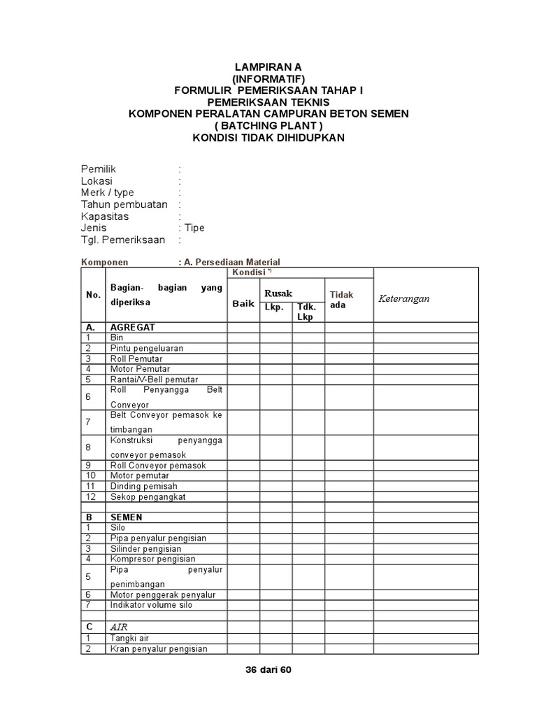 Kolom keterangan = di isi sesuai dengan keadaan aktual lapangan
