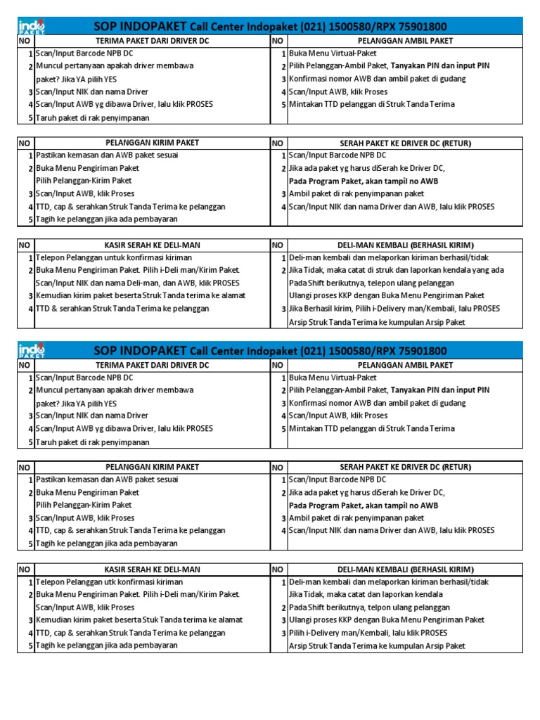 SOP INDOPAKET Call Center Indopaket (021) 1500580/RPX 75901800