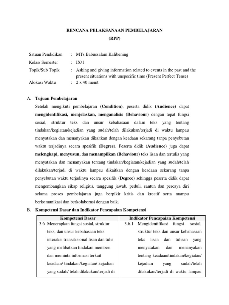 perfect tense). teks dan unsur kebahasaan teks