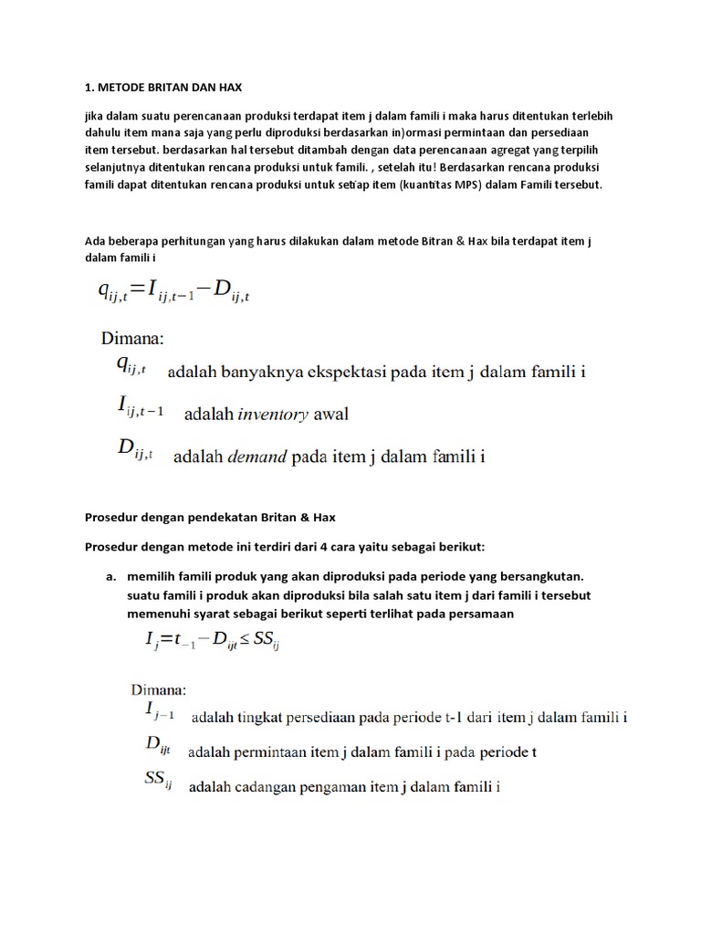 2. Metode Bitran dan Hax ( Termasuk kedalam Metode-Metode Dalam Penyusunan