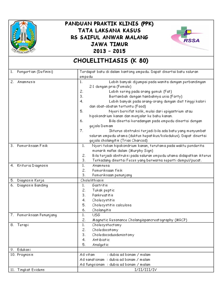 DiagnosisAwal: Cholelithiasis Kode ICD 10 : K 80 Rencana rawat : …… hari