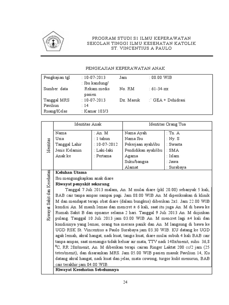 Rumah Sakit B dan opname selama 2 hari. Tanggal 9 Juli 2013 An. M diijinkan