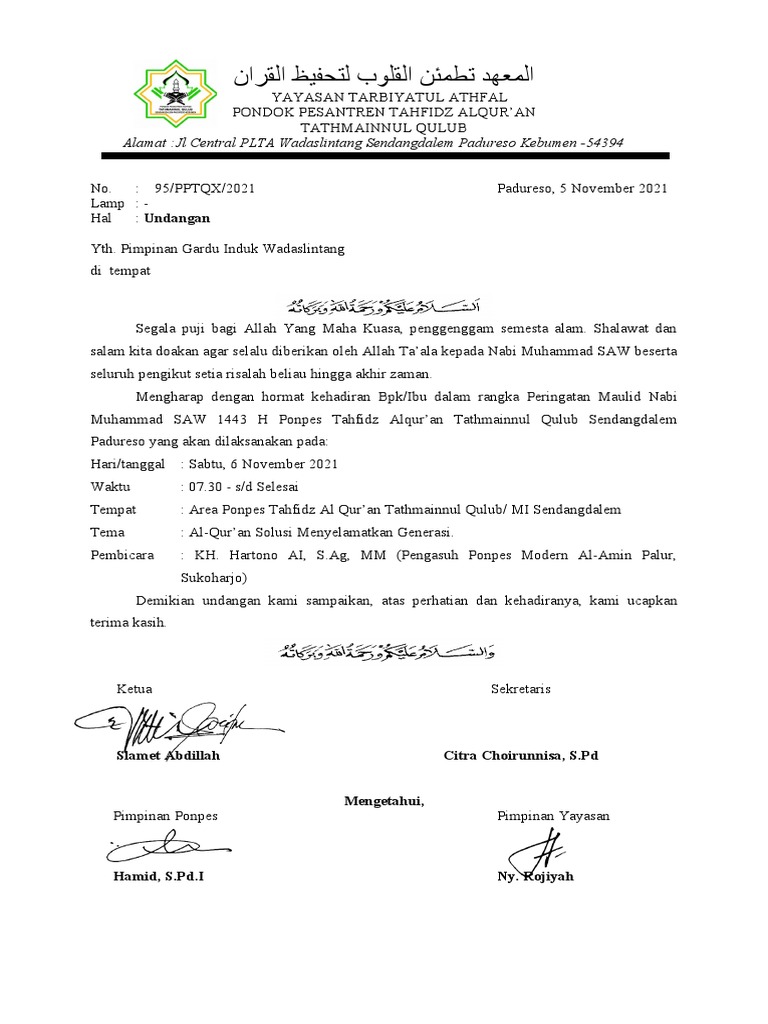 Tathmainnul Qulub Padureso bersama surat ini kami sampaikan permohonan kepada Bapak