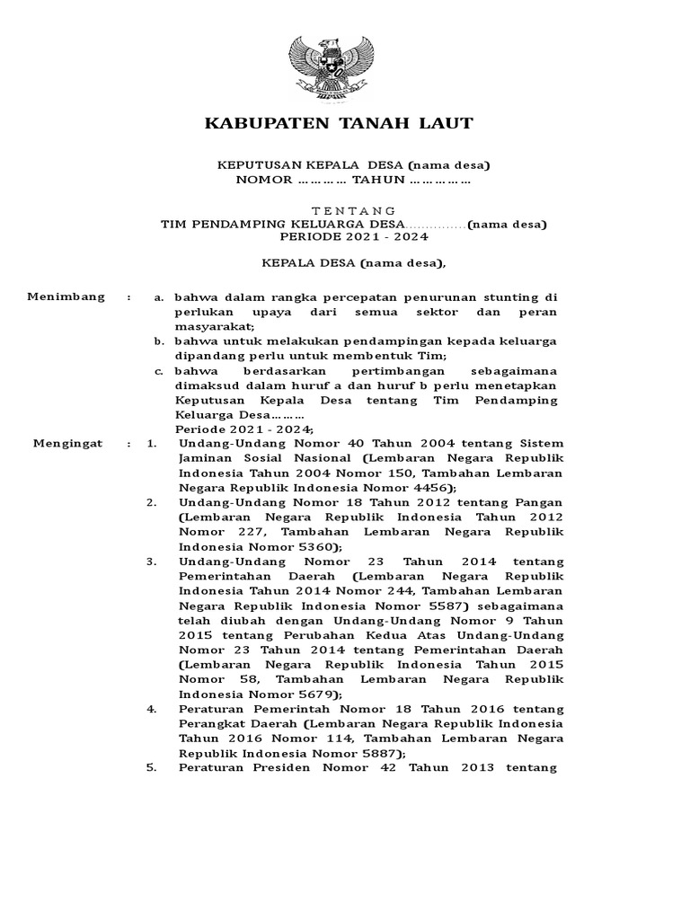 KESATU : Keputusan Kepala Desa tentang Tim Pendamping Keluarga