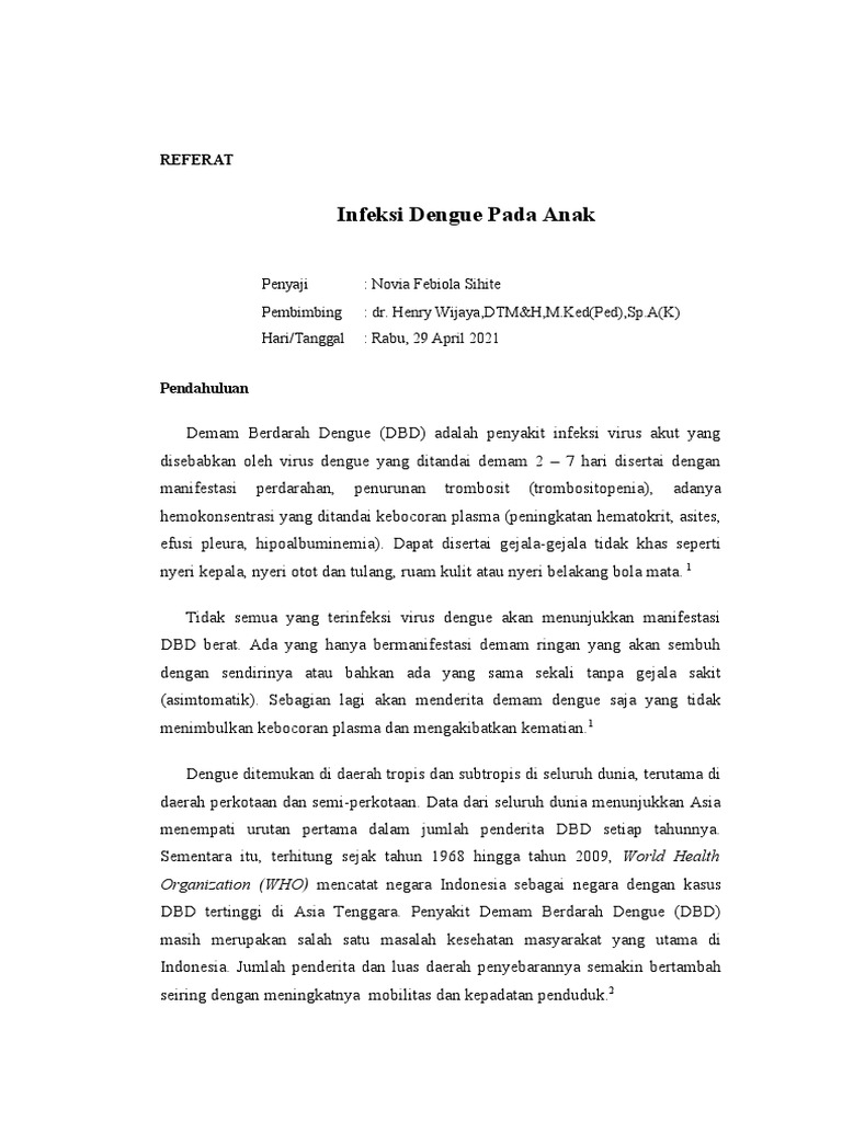 Pedoman Diagnosis dan Tata Laksana Infeksi Virus Dengue pada Anak.