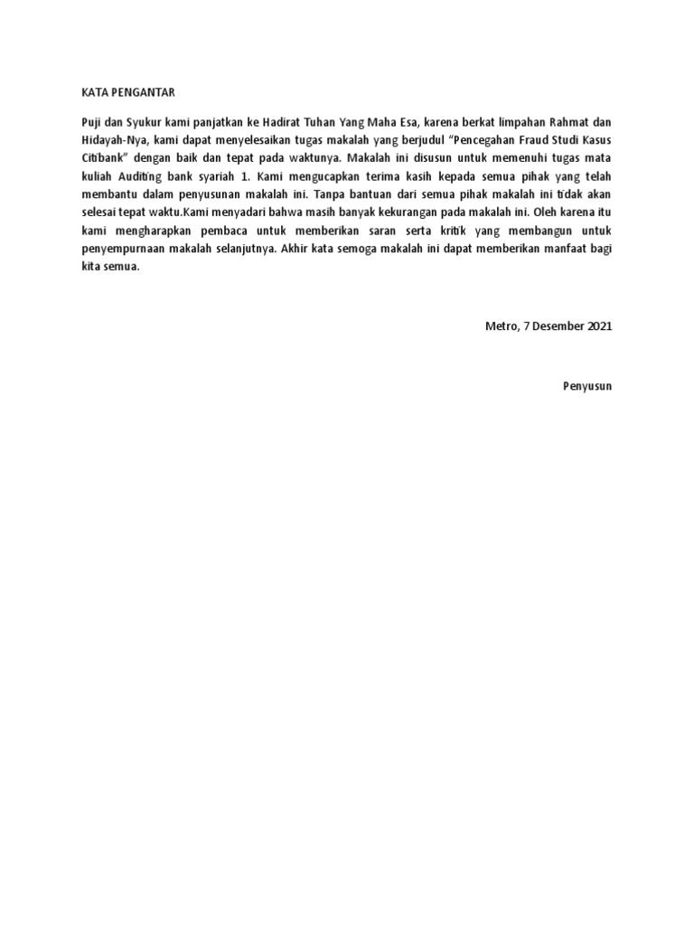 Hidayah-Nya, kami dapat menyelesaikan tugas makalah yang berjudul “Pencegahan Fraud Studi Kasus