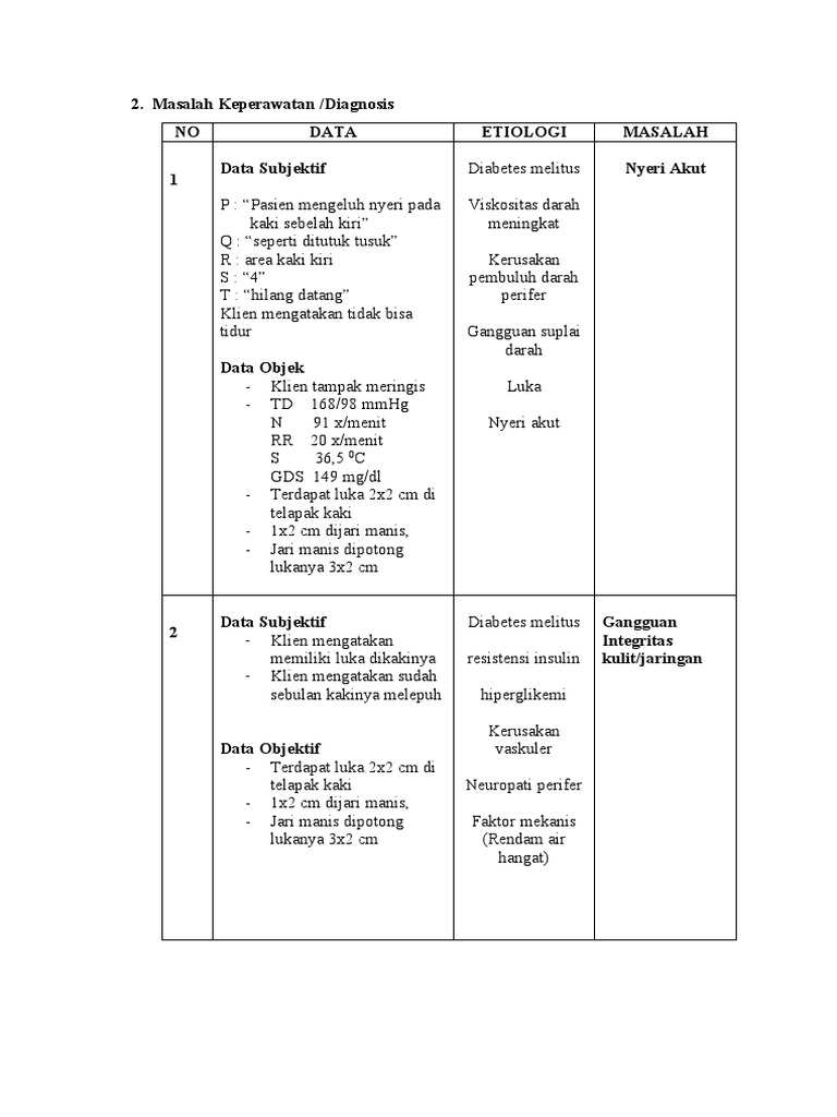 Data Subjektif Diabetes melitus Nyeri Akut