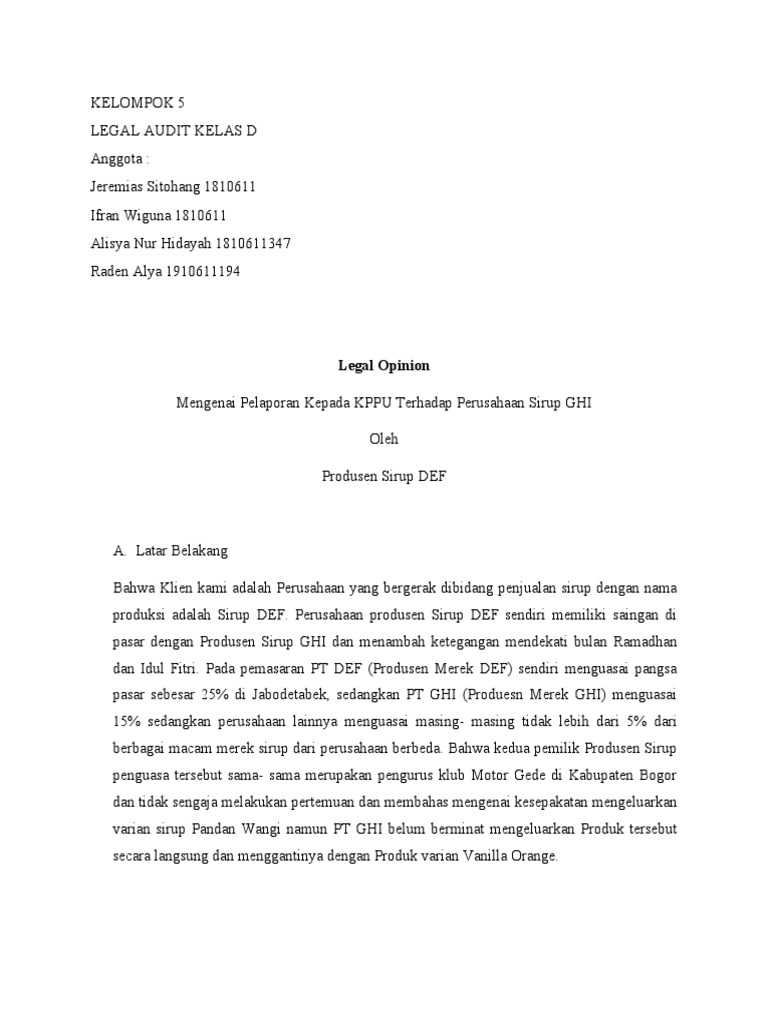Bahwa Klien kami adalah Perusahaan yang bergerak dibidang penjualan sirup dengan nama