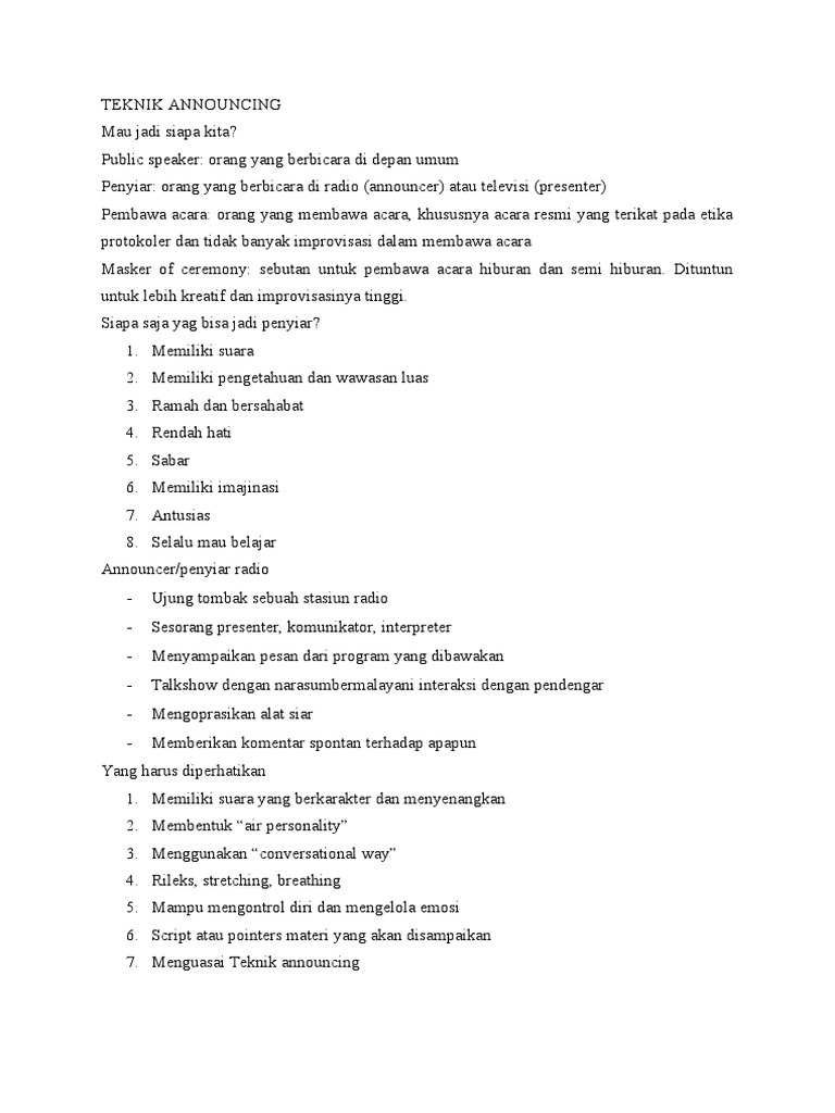 7. Menguasai Teknik announcing
