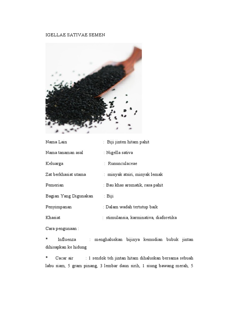 a. Karminatif : Biji jinten hitam manis di tumbuk hingga halus lalu di