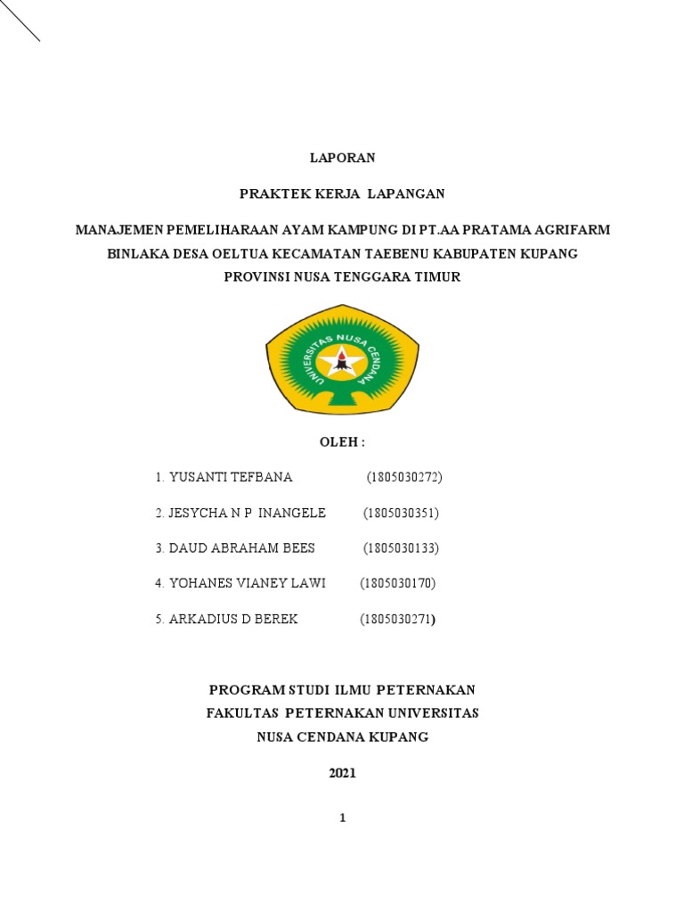 Laporan ini membahas tentang manajemen pemeliharaan ayam kampung yang dilakukan