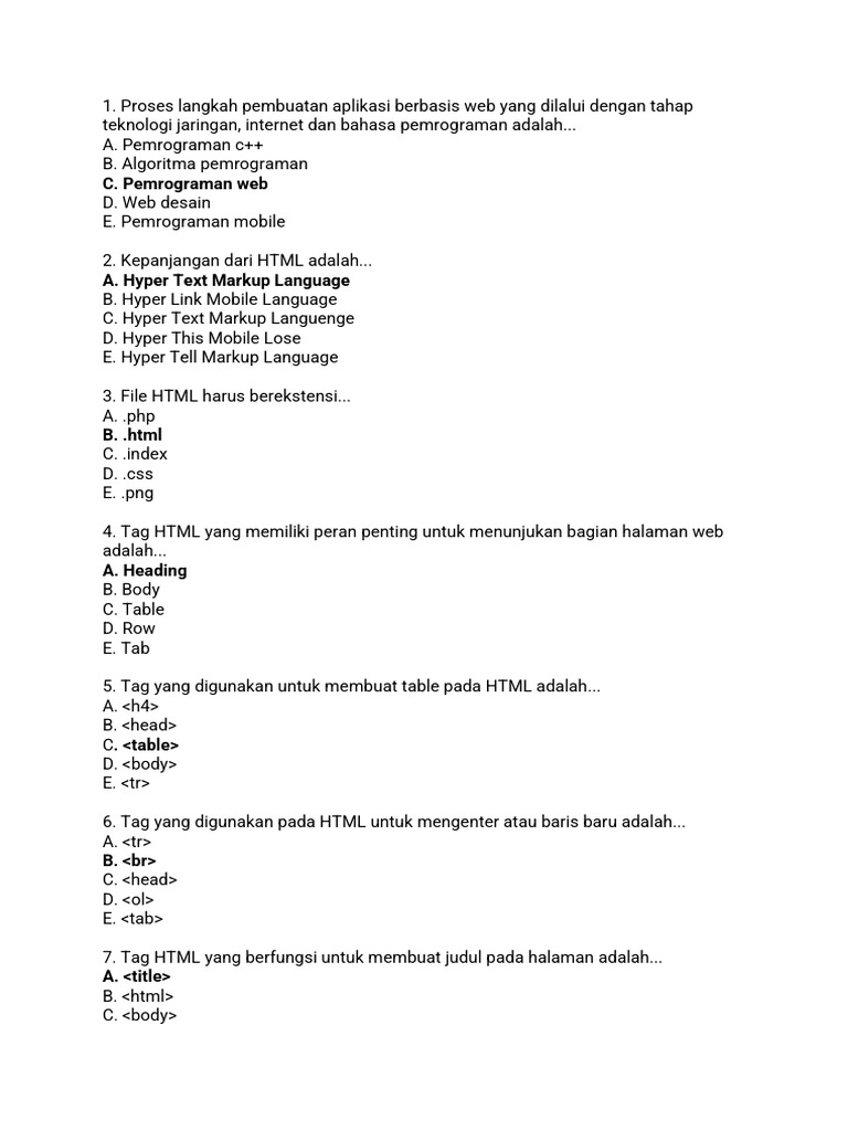 6. Tag yang digunakan pada HTML untuk mengenter atau baris baru adalah...