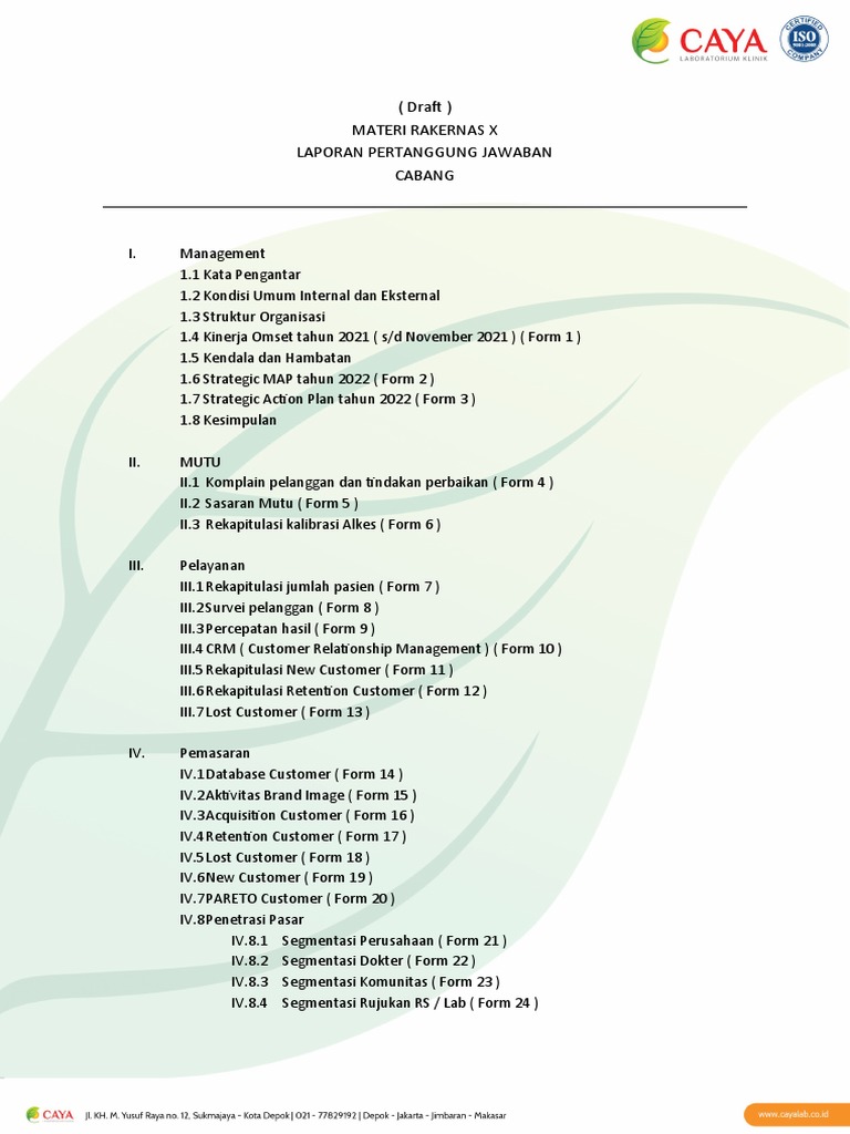 II.1 Komplain pelanggan dan tindakan perbaikan ( Form 4 )