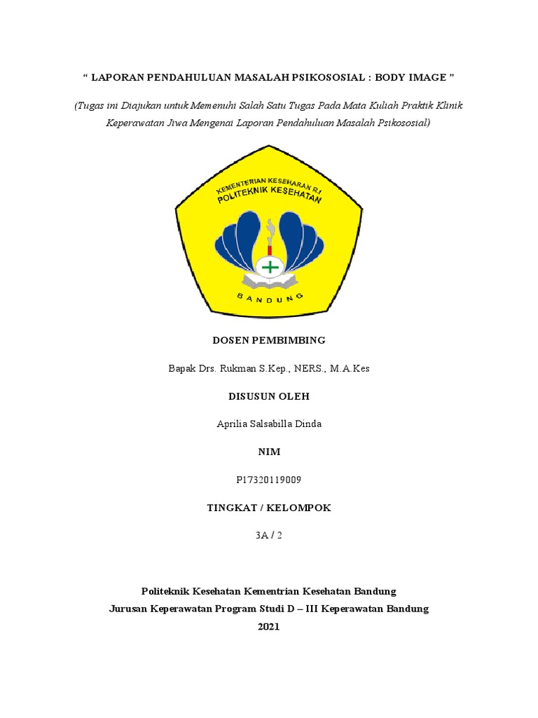 “ LAPORAN PENDAHULUAN MASALAH PSIKOSOSIAL : BODY IMAGE ”