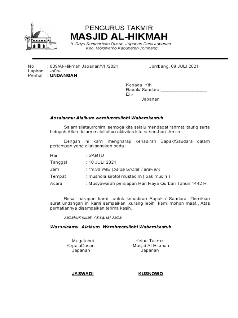 No : 009/Al-Hikmah Japanan/VII/2021 Jombang, 09 JULI 2021