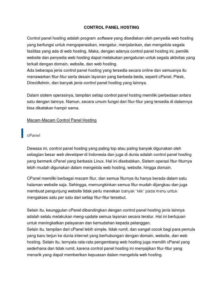 Control panel hosting adalah program software yang disediakan oleh penyedia web hosting