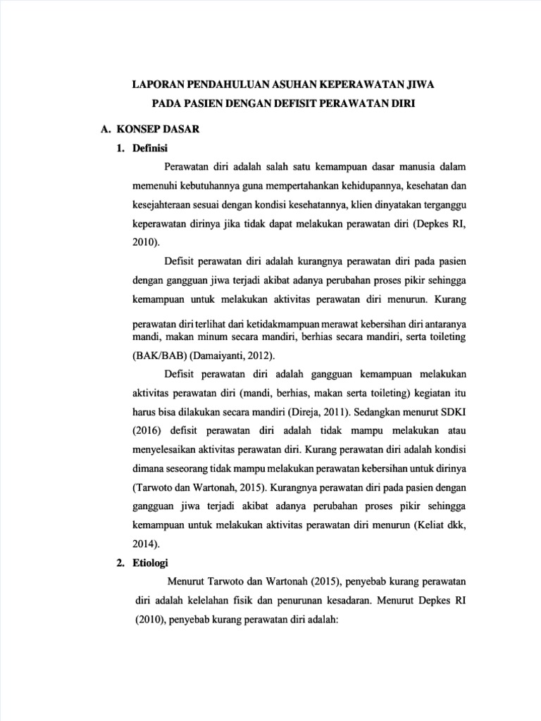 Faktor presivitasi defisit perawatan diri adalah kurang penurunan