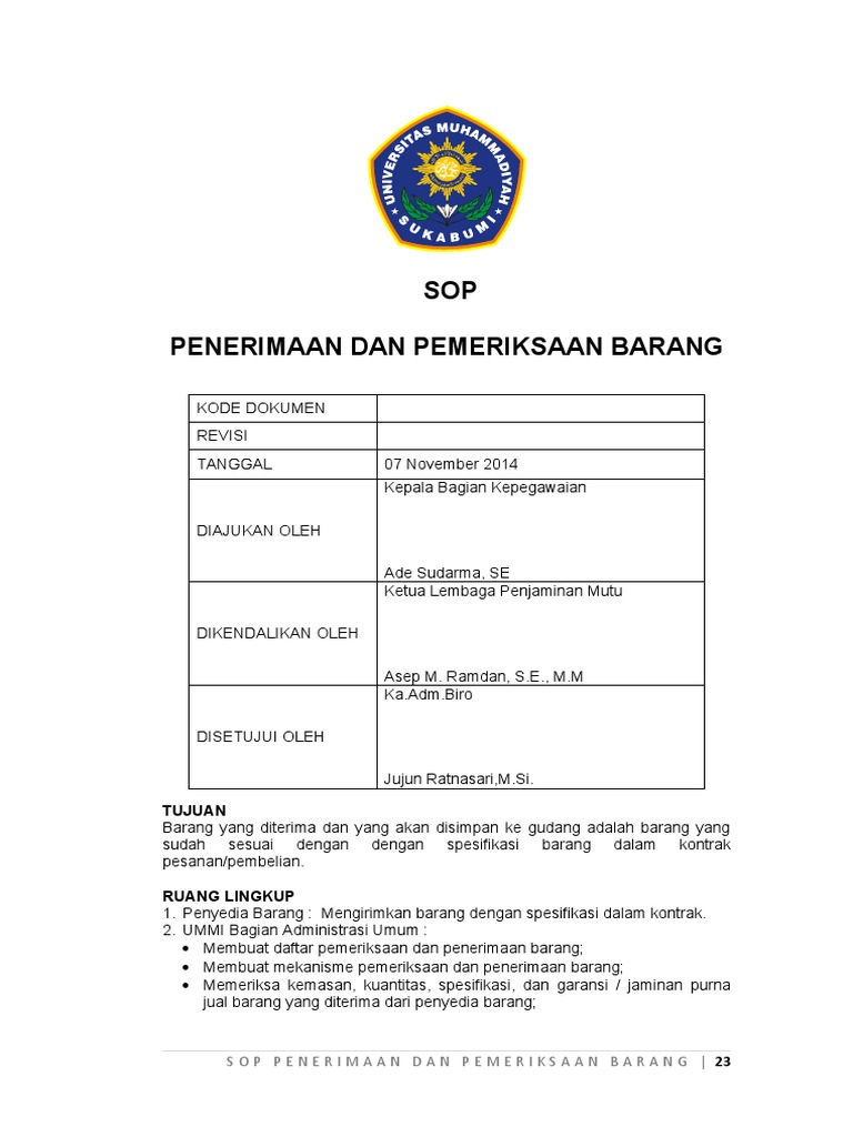 pemeriksaan barang dan daftar penerimaan barang.