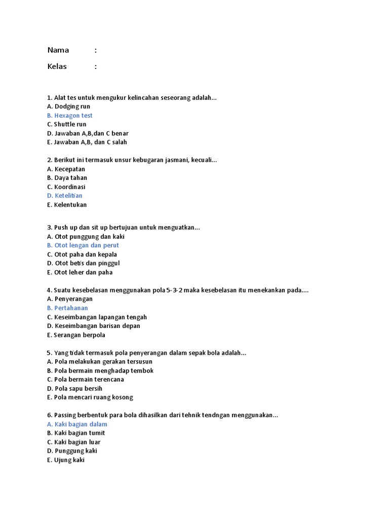 1. Alat tes untuk mengukur kelincahan seseorang adalah...