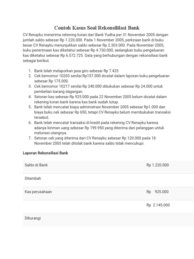 Contoh Kasus Soal Rekonsililasi Bank