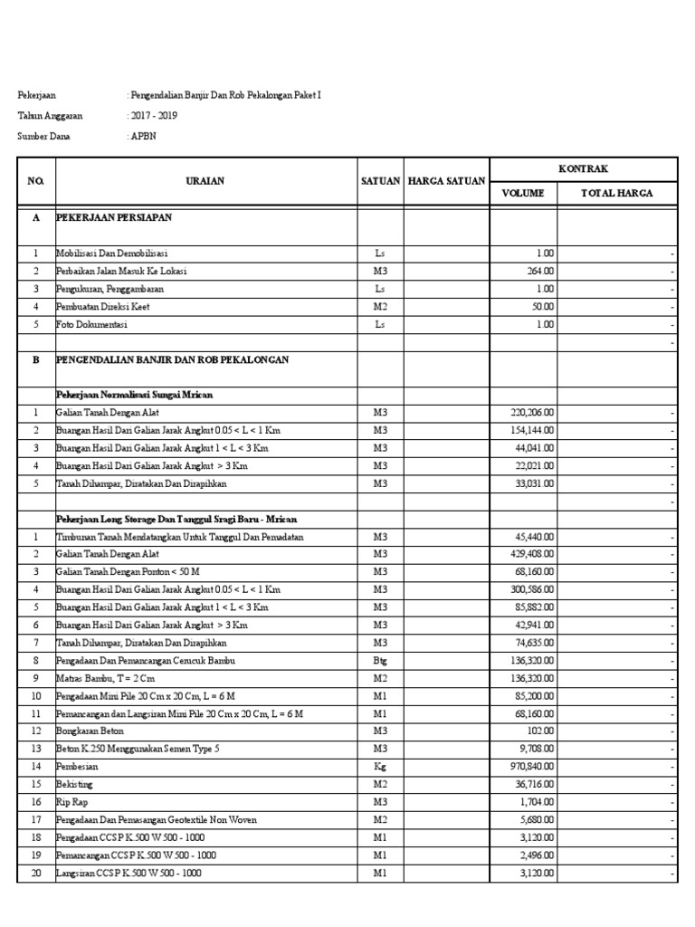 17 Pengadaan Dan Pemasangan Geotextile Non Woven M2 5,680.00 -