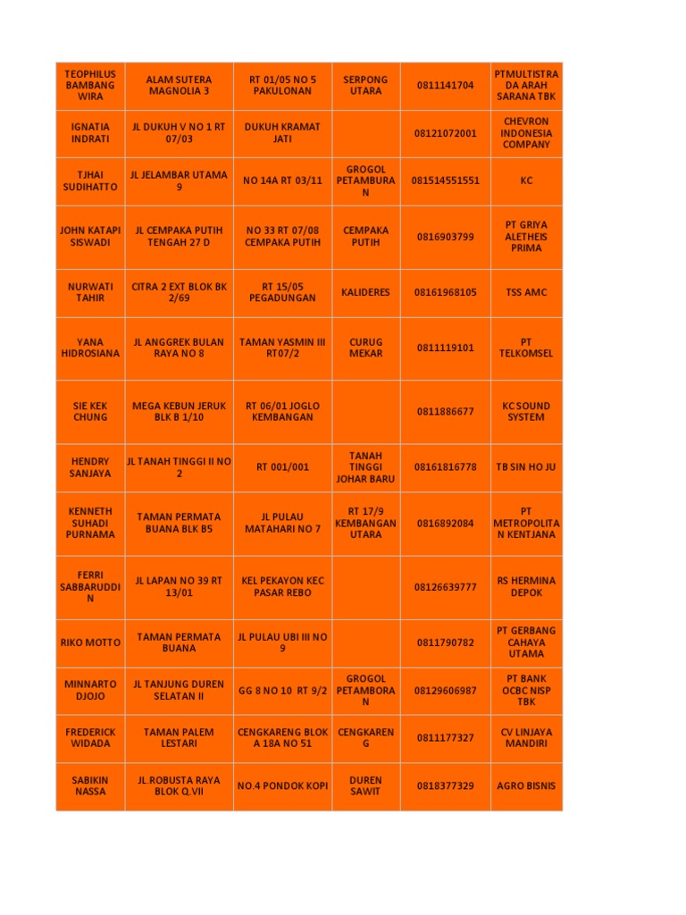 MINNARTO JL TANJUNG DUREN GG 8 NO 10 RT 9/2 PETAMBORA 08129606987 OCBC NISP