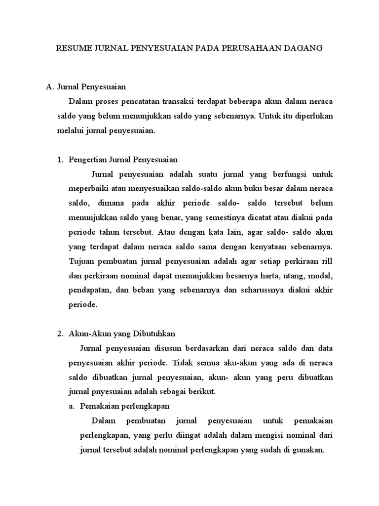 RESUME JURNAL PENYESUAIAN PADA PERUSAHAAN DAGANG