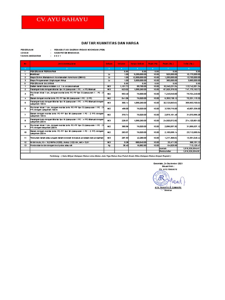 3 Biaya Pengamanan Lingkungan Hidup Ls 1.00 3,500,000.00 10.00 350,000.00 3,850,000.00