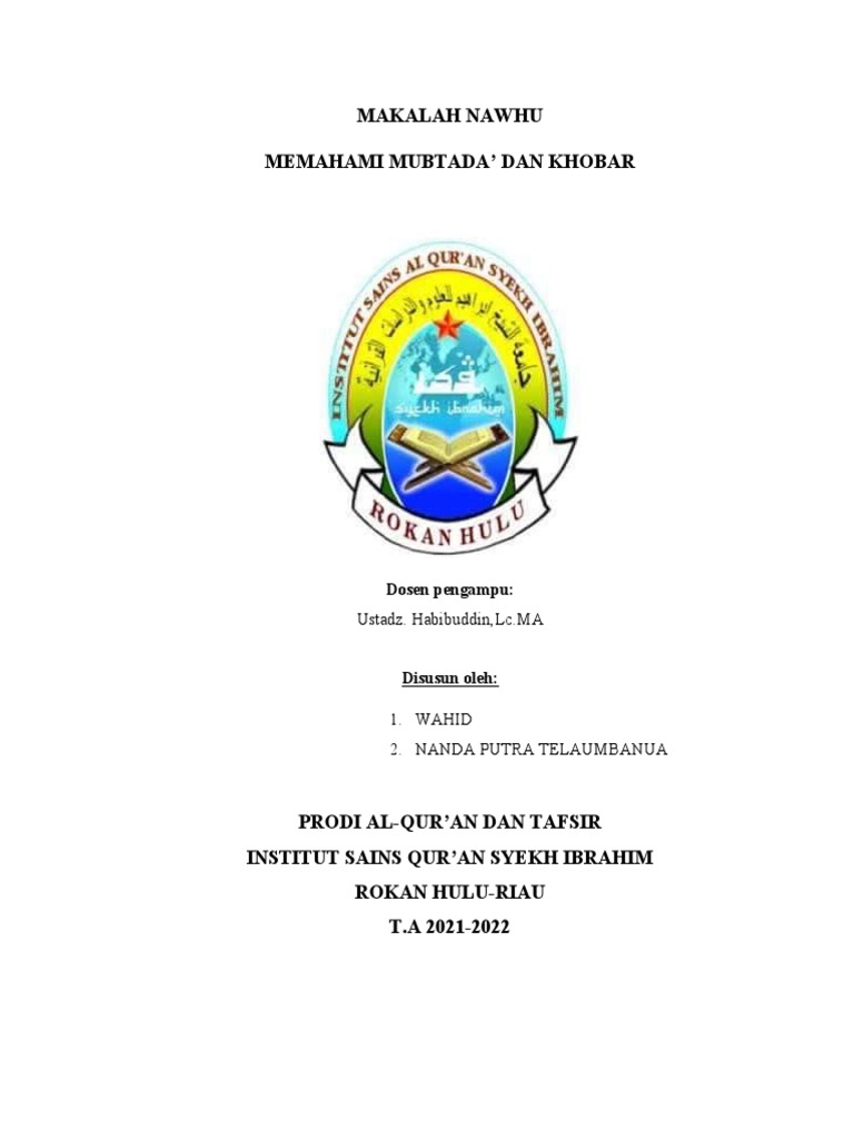 1. Untuk mengetahui pengertian mubtada’