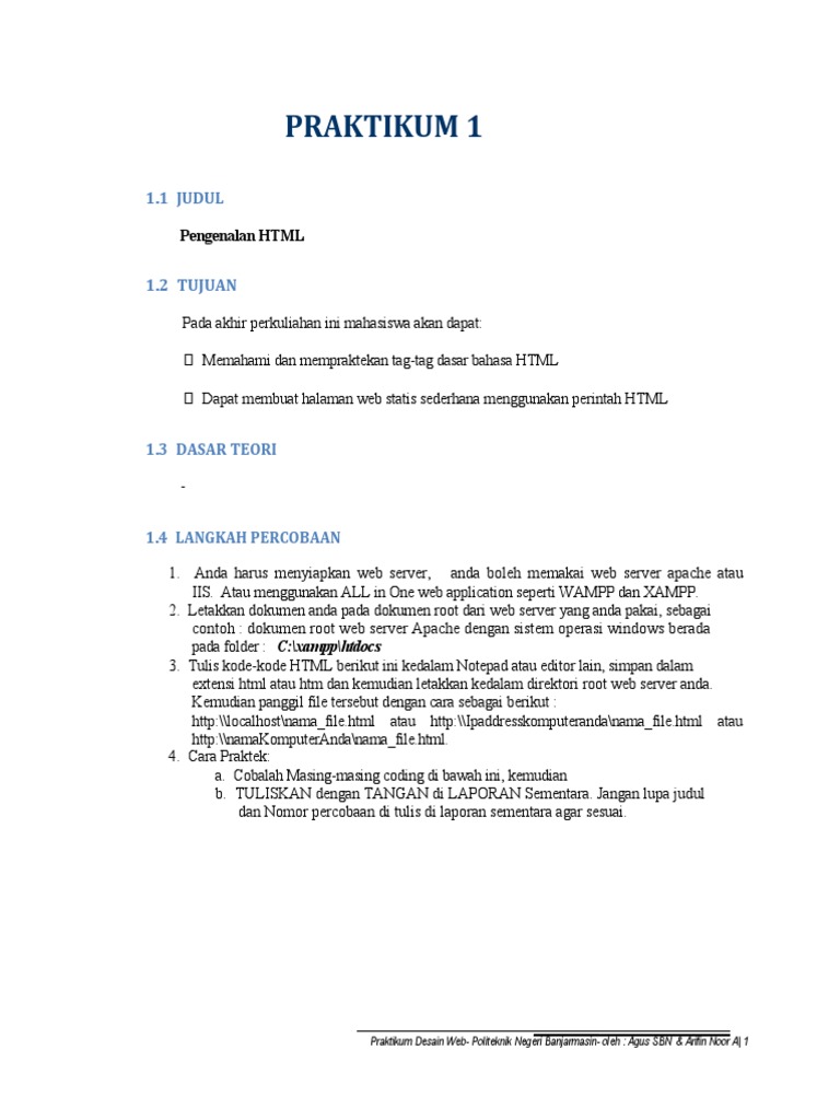 Praktikum Desain Web- Politeknik Negeri Banjarmasin- oleh : Agus SBN & Arifin Noor A| 1