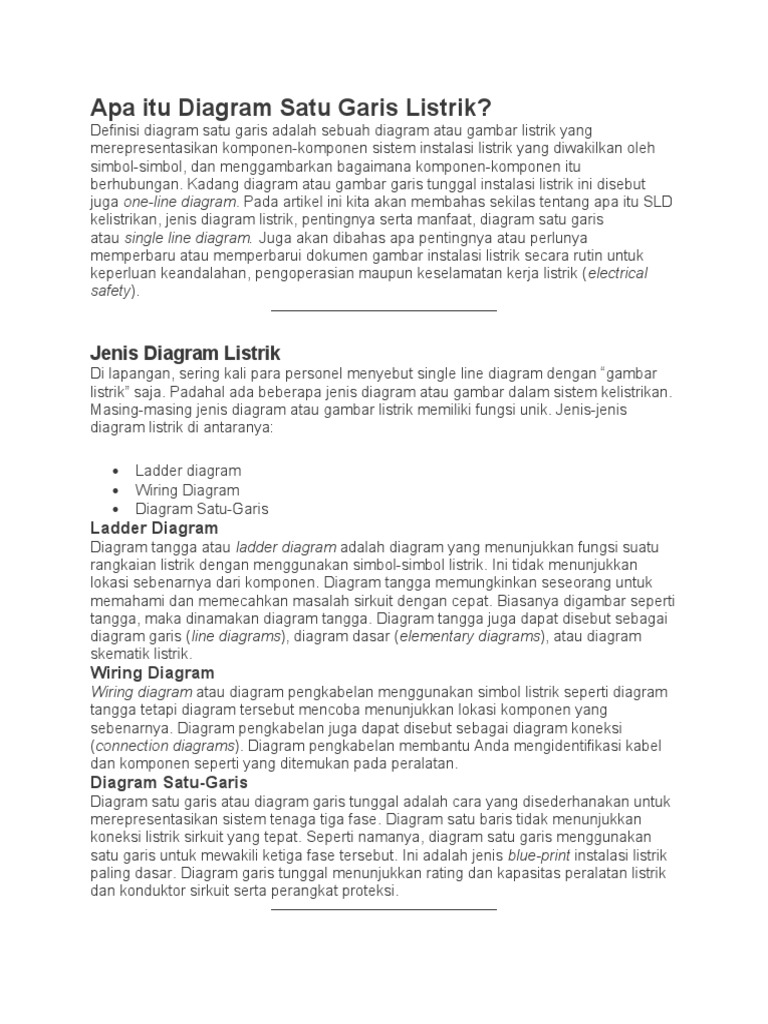 Definisi diagram satu garis adalah sebuah diagram atau gambar listrik yang