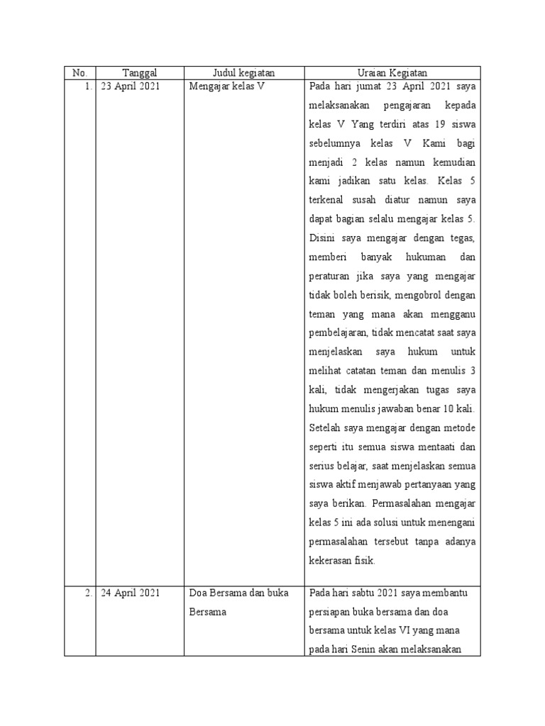 1. 23 April 2021 Mengajar kelas V Pada hari jumat 23 April 2021 saya