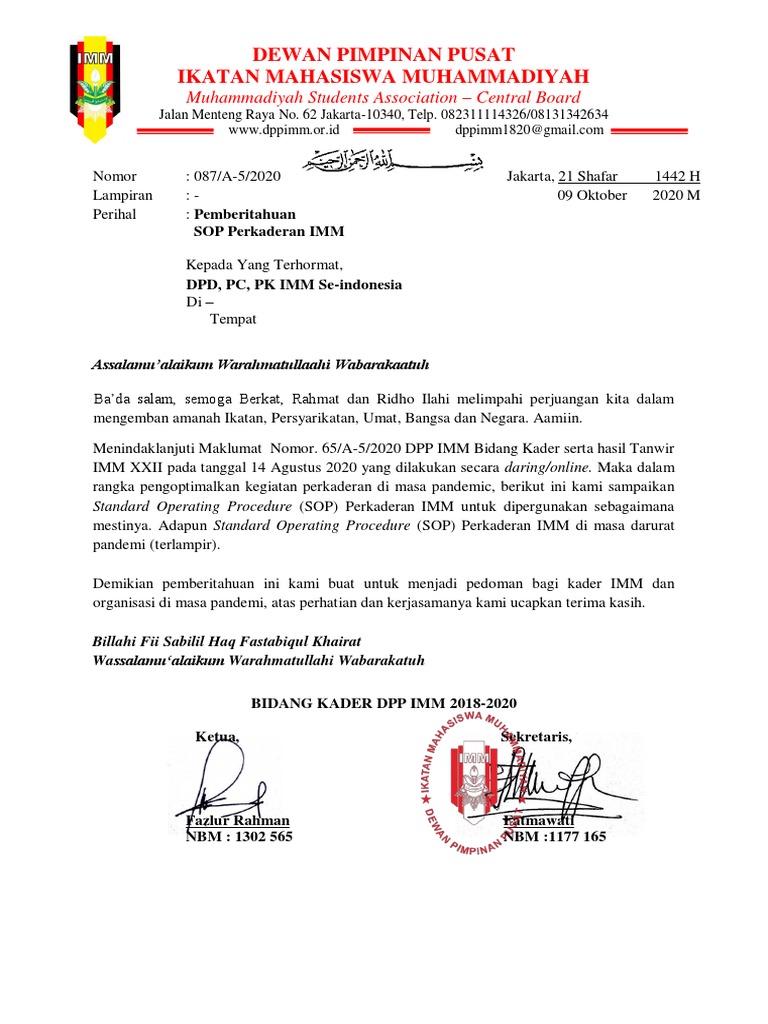 Demikianlah Standard Operating Procedure (SOP) Perkaderan IMM di masa darurat
