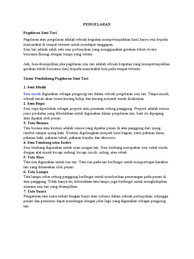 Unsur Pendukung Pagelaran Seni Tari
