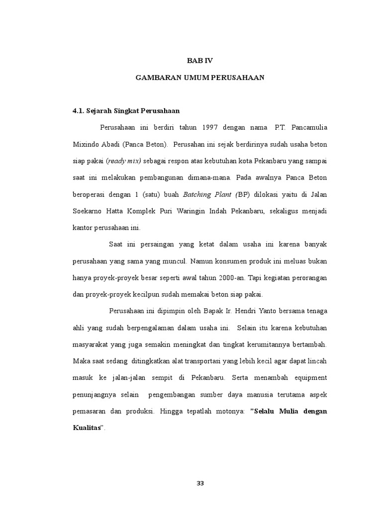 Mixindo Abadi (Panca Beton). Perusahan ini sejak berdirinya sudah usaha beton