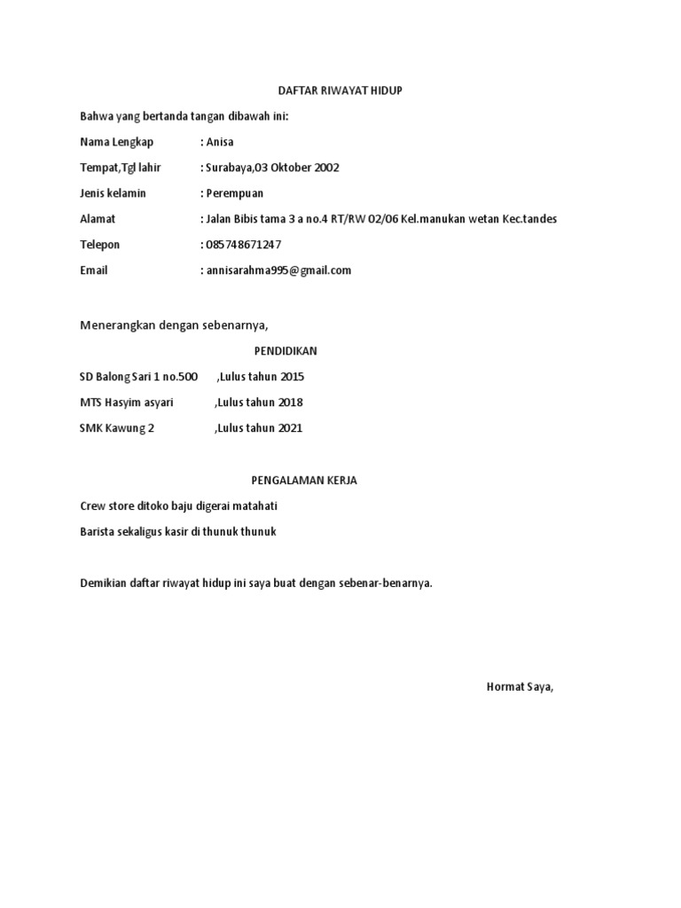 Demikian daftar riwayat hidup ini saya buat dengan sebenar-benarnya.