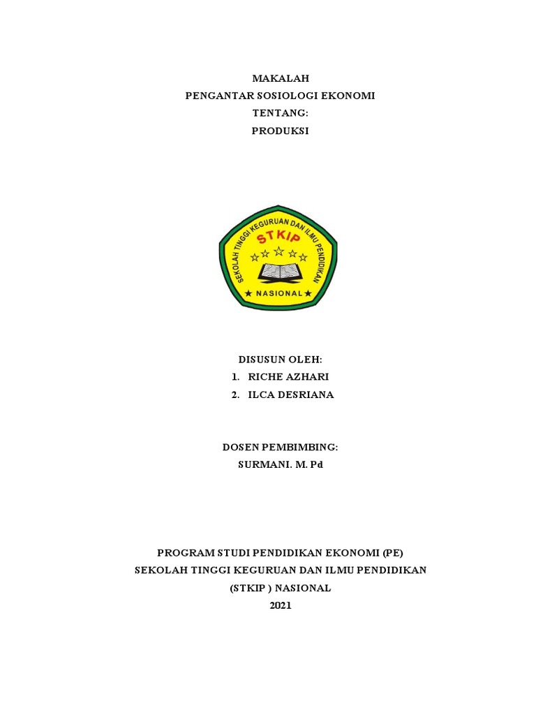 Ekonomi yang berjudul “Produksi ” tepat pada waktunya. Makalah ini berisikan