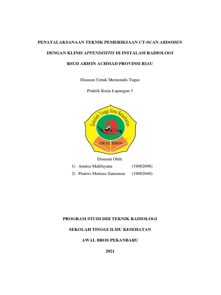 RSUD Arifin Achmad tentang penatalaksanaan pemeriksaan ct- scan abdome