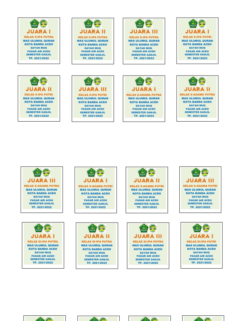 JUARA I JUARA II JUARA III KELAS TERBERSIH