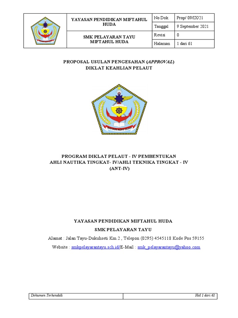 Proposal usulan pengesahan program diklat keterampilan pelaut dibuat untuk