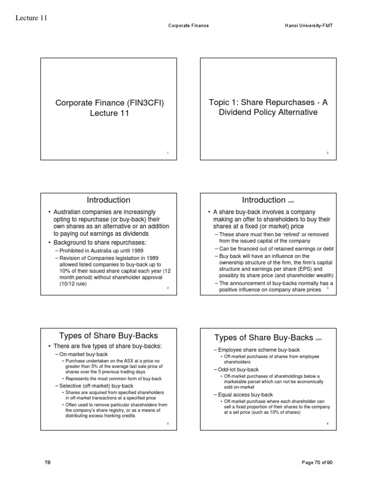 Topic 1: Share Repurchases - A Dividend Policy Alternative