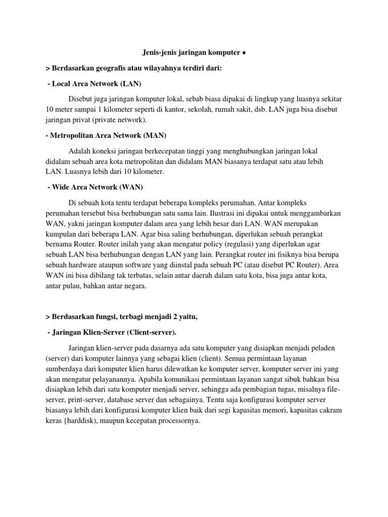 Jenis-jenis jaringan komputer •