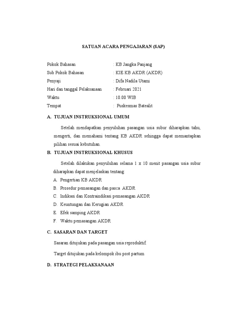 Dengan adanya satuan acara penyuluhan ini masyarakat dapat lebih mengerti