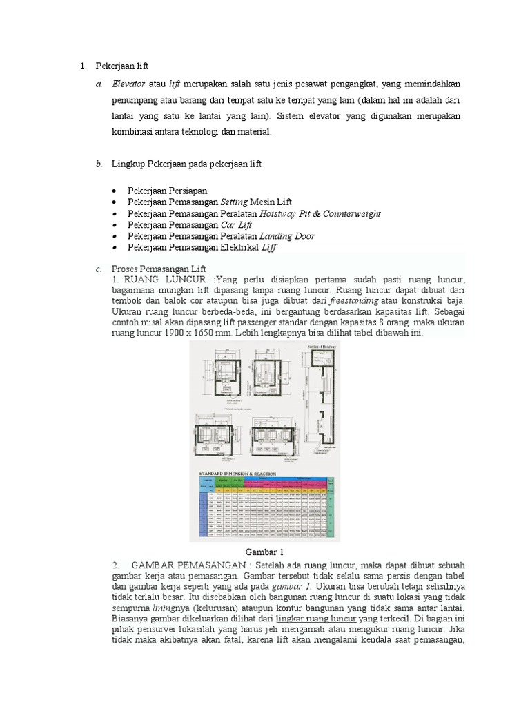 b. Lingkup Pekerjaan pada pekerjaan lift