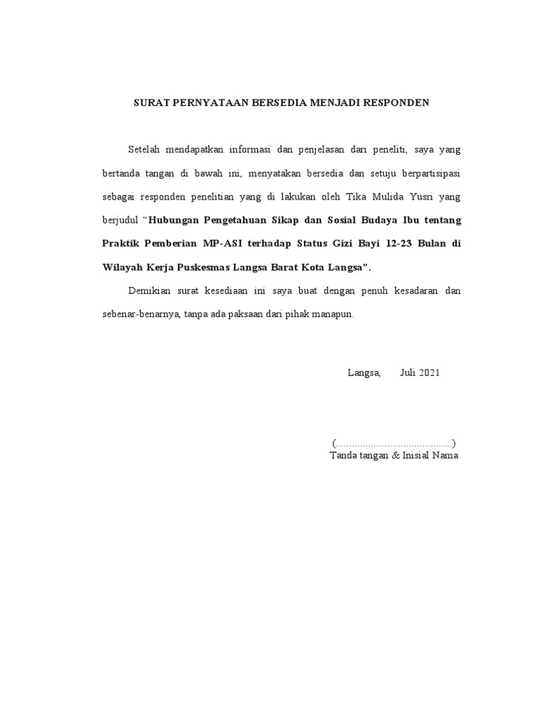 SURAT PERNYATAAN BERSEDIA MENJADI RESPONDEN
