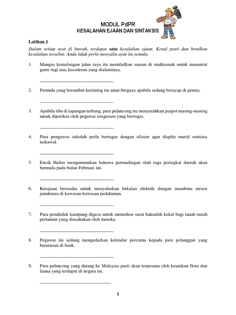 Dalam setiap ayat di bawah, terdapat satu kesalahan ejaan. Kenal pasti dan betulkan