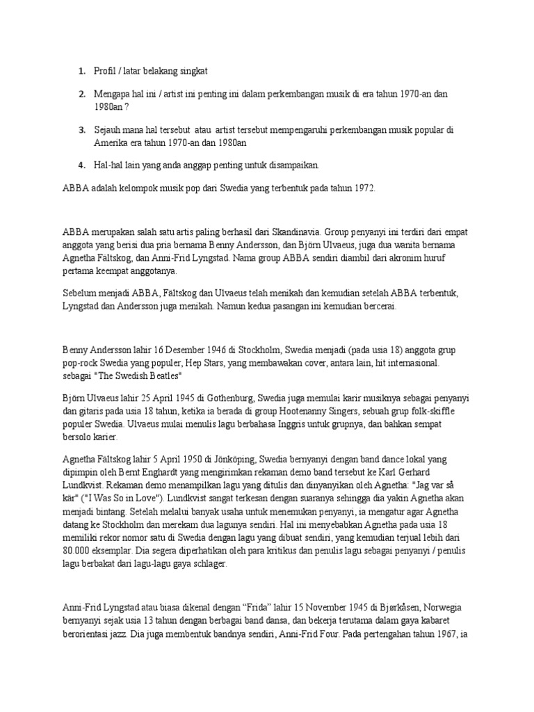 2. Mengapa hal ini / artist ini penting ini dalam perkembangan musik di era tahun 1970-an dan
