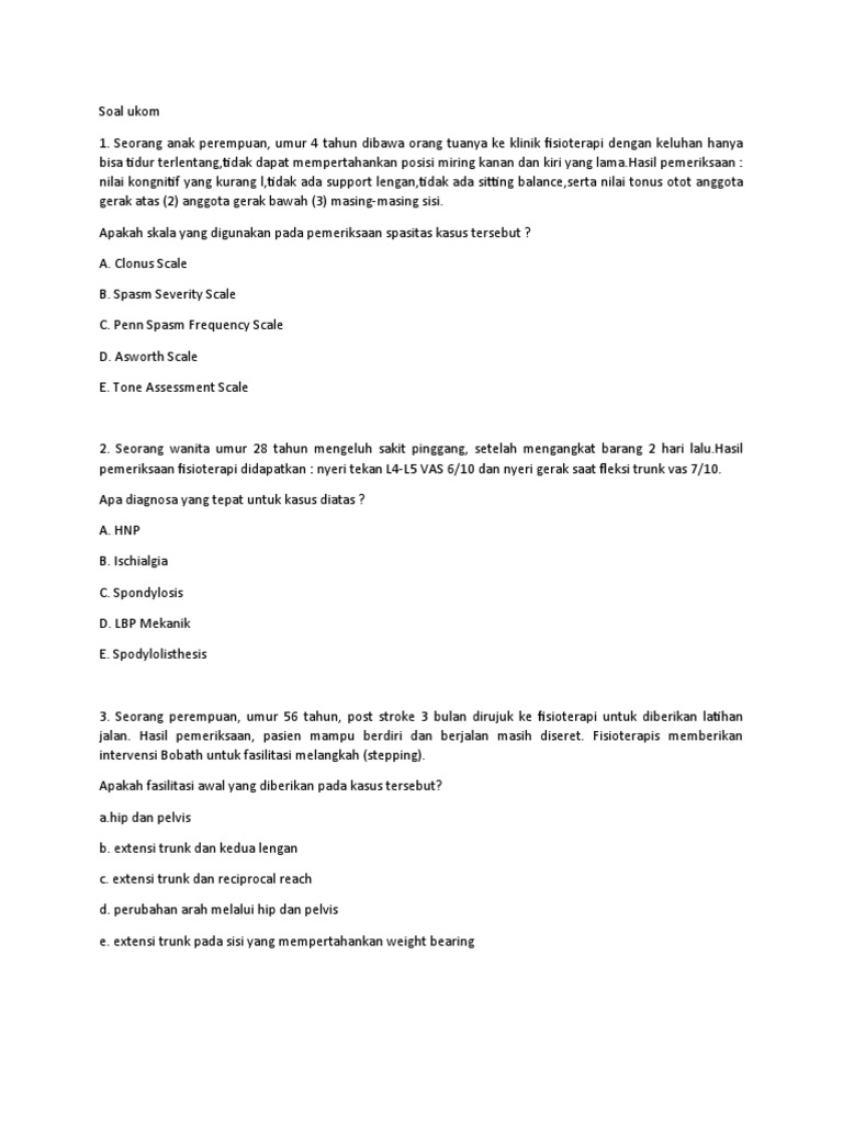 Soal Ukom Fisioterapi dan Diagnosa Klinik