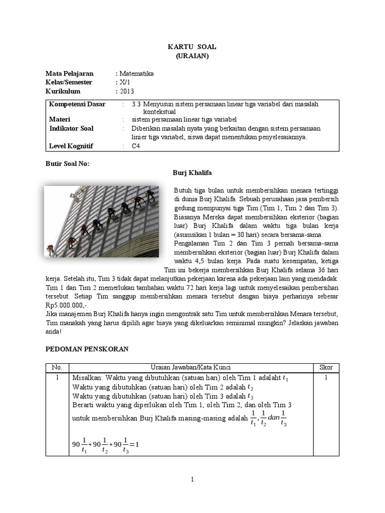 Indikator Soal : Diberikan masalah nyata yang berkaitan dengan sistem persamaan