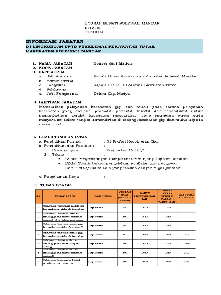 1. NAMA JABATAN : Dokter Gigi Madya
